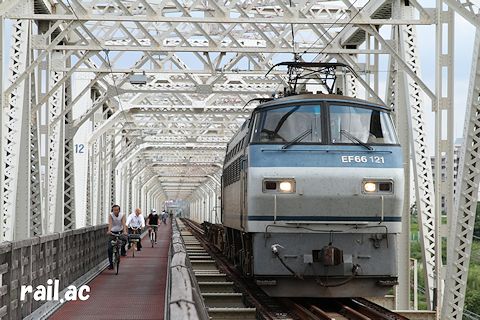 2013年3月に赤川鉄橋を走る定期貨物列車が増え,明るい時間帯でも各形式の電機が見られるようになったのでまた行こうと思っていたところ, 同年秋に仮橋が閉鎖されるとの発表がありました。 あまり人が増えすぎないうちに・・・と思って何度か通って撮影したものから各形式ごとにピックアップしたのが上の写真です。 そしてある日,EF66重単の列車で2両ともロクロク(0番代)に遭遇することができ,私の赤川仮橋での撮影を終えることとしました。