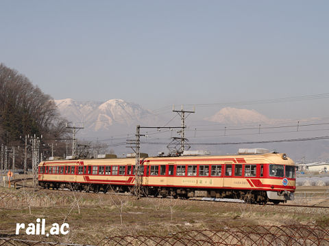2006年3月25日,初めて長野電鉄へ。 見事に晴れて雲ひとつなく青空が広がったこの日,桜沢から都住までを歩きながら, まだまだ雪を載せた信州の山々をバックに2000系特急をメインに各形式を撮影しました。