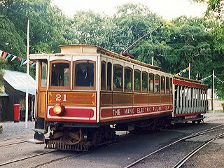 島の北東部を走る電気鉄道。ほとんど電動車とオープン式の付随車のペアで走る。 付随車には運転台がないので折り返し駅で前後の車両を入れ換える。その際,人力で付随車を押す場面も見られたが,一人でも難なく押していた。 車両もすべて何十年も前のものであるが,手入れは行き届いていた。 SL鉄道125周年記念の装飾車両も走っており, 途中の GROUDLE から出ているGROUDLE GLEY RAILWAYというトロッコ鉄道が運転される特定の火曜日または水曜日の夜にイルミネーションを光らせながら走るようだった。 (この電気鉄道は普段は昼間のみ運行)