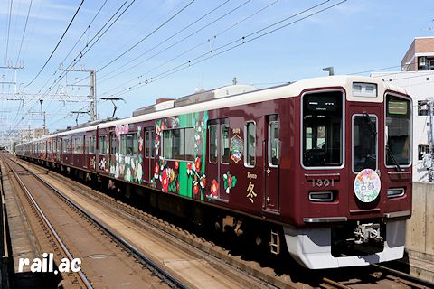2018年3月17日から,京都線ではイラストレータ永田萠さんが京都線沿線の四季をあしらったラッピング編成1301×8Rが運用されました。