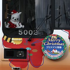 2017年は12月1日から25日まで,ラッピング列車「HAPPY TRAIN☆」5002Fの車内と窓が装飾され,クリスマスヘッドマークを掲出し, 車掌台に乗務している「しんちゃん」がサンタクロース姿になって,クリスマス装飾列車として走っています。