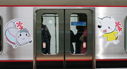 利用者の減少が続く粟生線の活性化のために沿線自治体などで組織する「神戸電鉄粟生線活性化協議会」のシンボルキャラクター「しんちゃん」と「てつくん」を描いたヘッドマークが,2010年5月22日から6000系第2編成6004Fに掲出されています。 側面にもキャラクターのステッカーが掲出されています。 初日には小野駅で出発式も行われ,6004号車の運転台には「しんちゃん」のぬいぐるみが飾られていました。