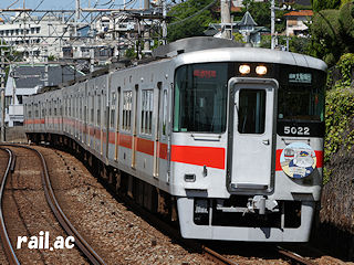 ラッピング列車は6000系6002F4両編成で,両先頭車にラッピングとヘッドマーク,中間車はドア横ステッカーが掲出されています。